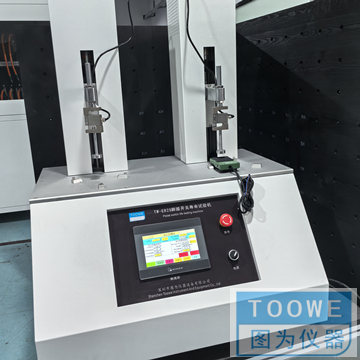 技术参数: 1、 根据标准YY 1057-2016和GB9706.1-2020的测试要求而设计制造的专门设备,适用于医用脚踏开关的寿命试验。设备采用铝合金机架,不锈钢封板,由电极驱动,触摸屏显示及设置测试参数,PLC控制。可预设试验次数、试验速率。 2、试验周期:0-99999; 3、驱动方式:电动; 4、试验工位:双工位; 5、测试速率:0-30次/分(连续可调) 6、带有多功能的装夹治具,可适用大部分的样品装夹; 7、电源:220V、50Hz