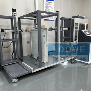 在供电设备顶部施加8500 N/m’的均分布载荷,时间持续 5min;在供电设备的顶部正面和背面的顶角依次施加 1200 N 的力时间持续 5 min在供电设备每个侧面,距离侧面边缘 20 mm 处依次施加60N的时间持续5 min试验结束后,检查供电设备的电气间隙和爬电距离保持满意,IP 防护等级不受影响,门、充电连接装置、闭锁装置等仍能正常操作,没有暂时或永久性的变形而引起的带电部件与外壳的接触。